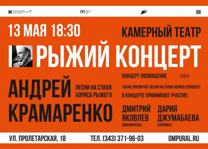 13 мая в Камерном театре Литературного квартала вас ждет «Рыжий концерт» российского барда Андрея Крамаренко.